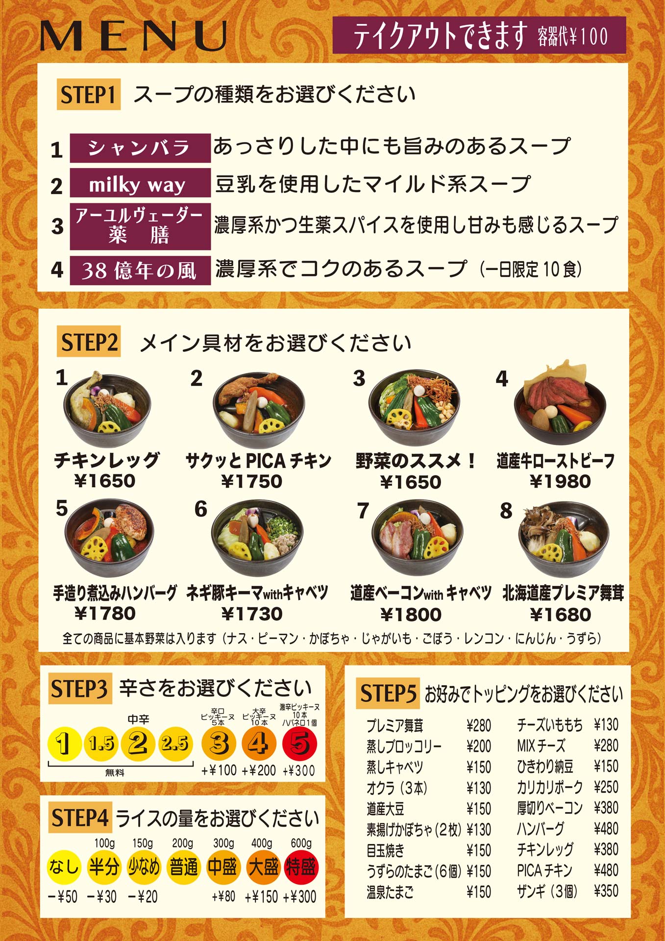 札幌駅・大通のスープカレー店 テイクアウトOK